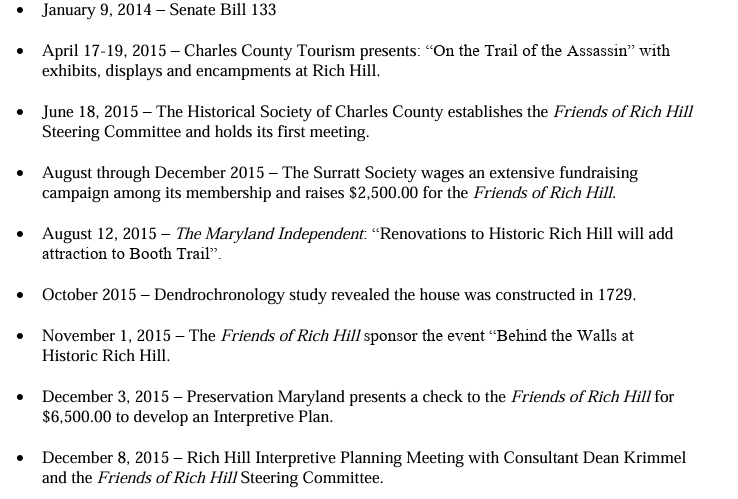 The Historical Society of Charles County establishes the Friends of Rich Hill Steering Committee and holds its first meeting.